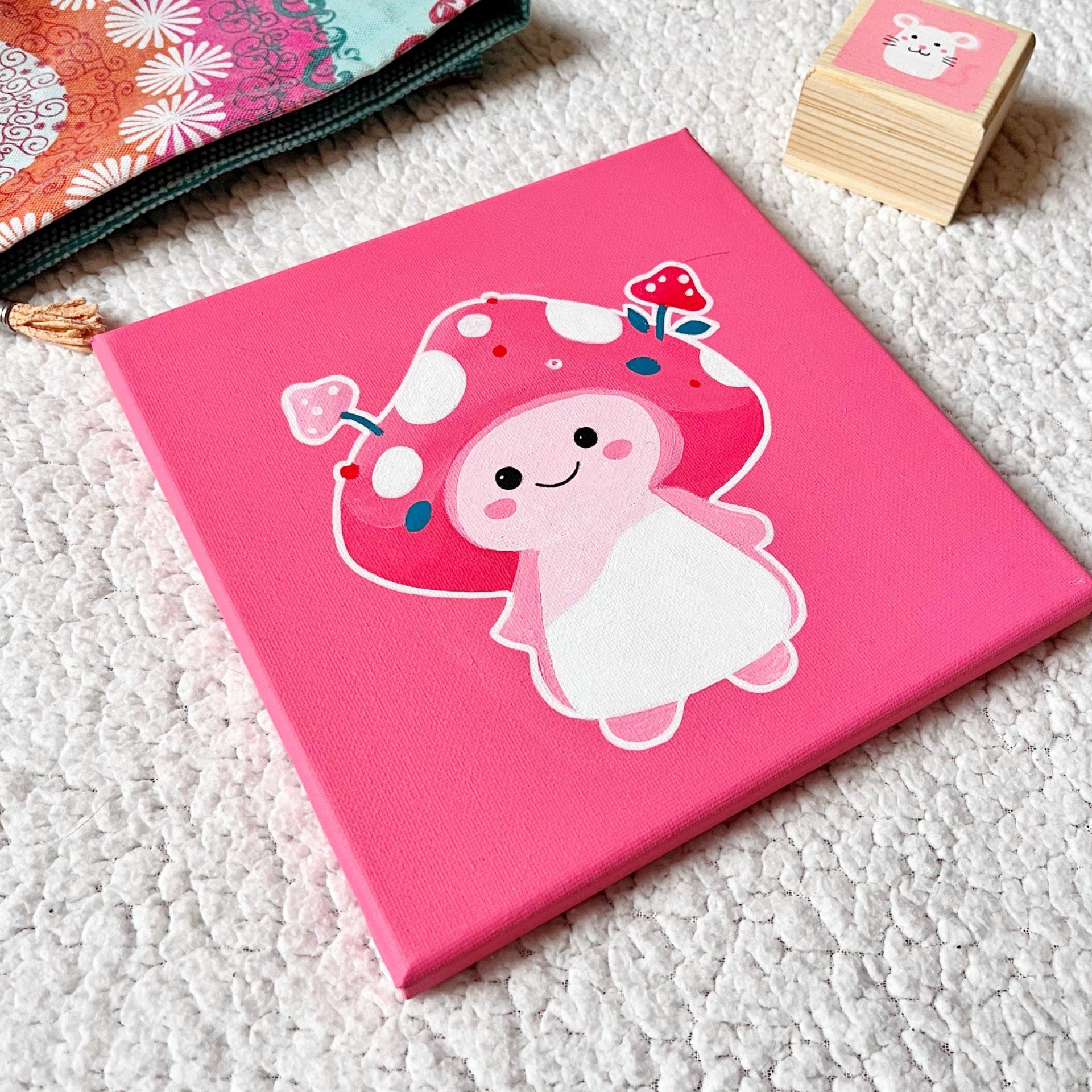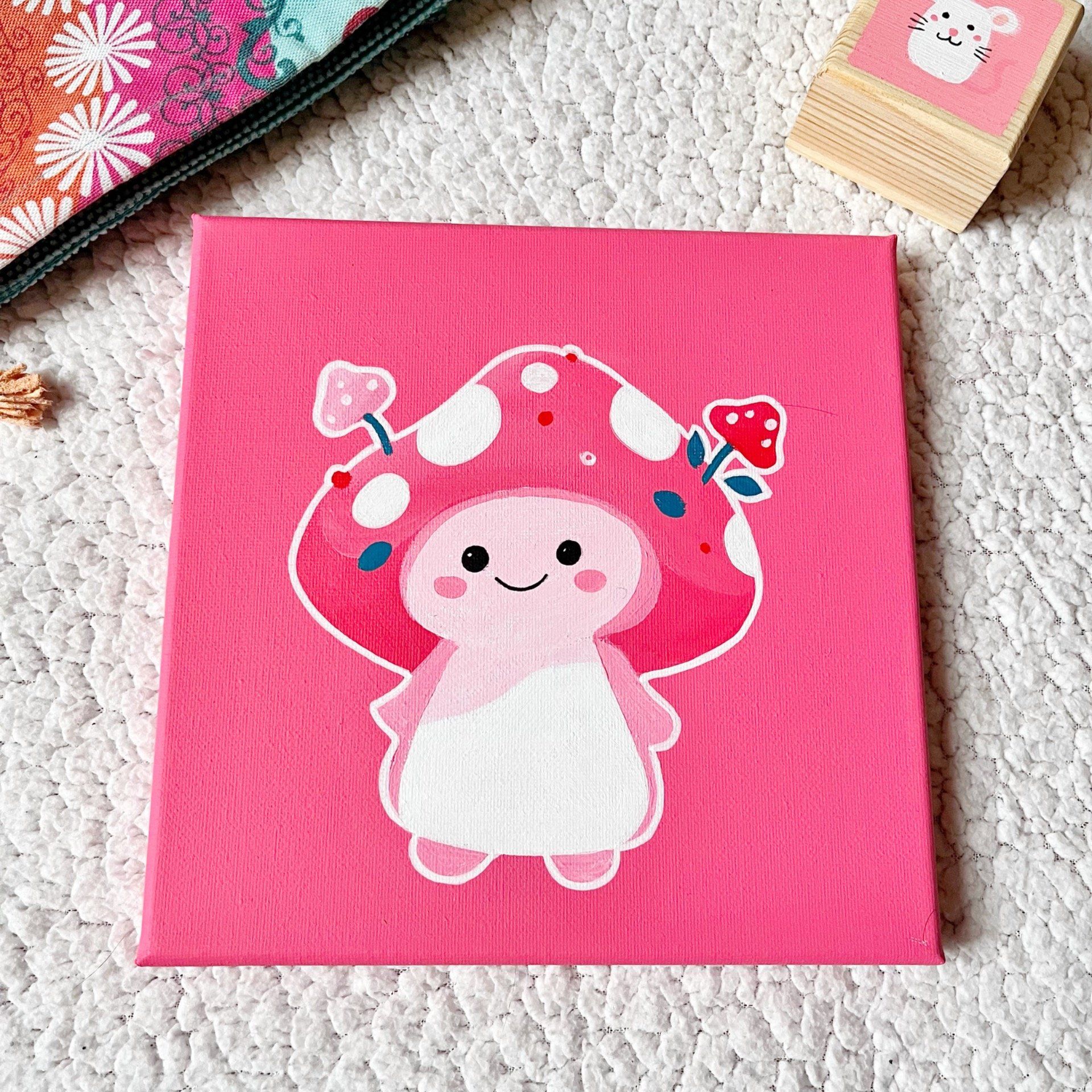 Un tableau plein de tendresse pour une chambre d'enfant, orné d'un champignon adorable